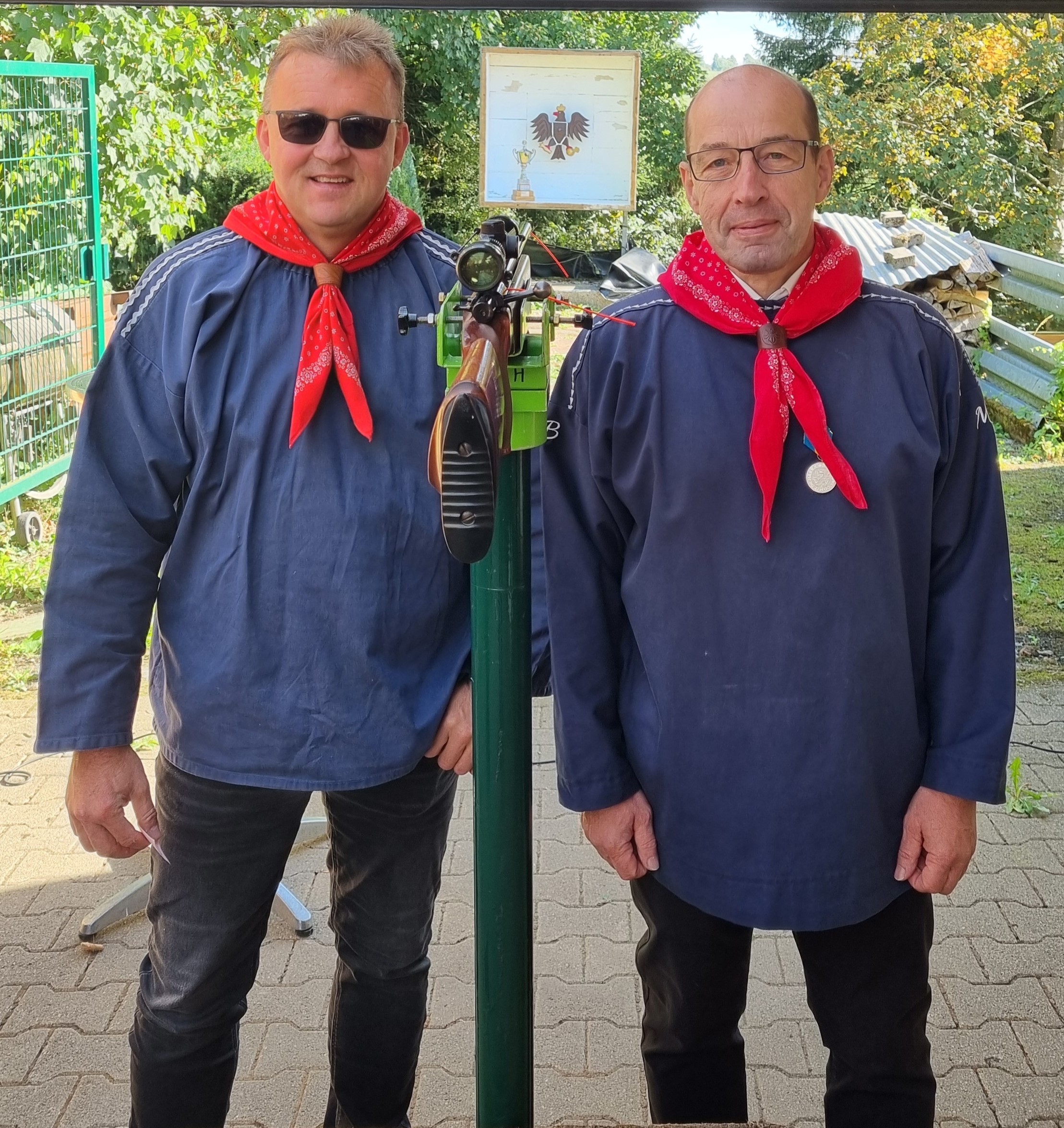Unsere Schießwarte Martin Abel und Mike Braumann hatten wieder alles Griff und sorgeten auf dern Schießstand von Gut Ziel in Delle für einen fairen Wettbewerb.