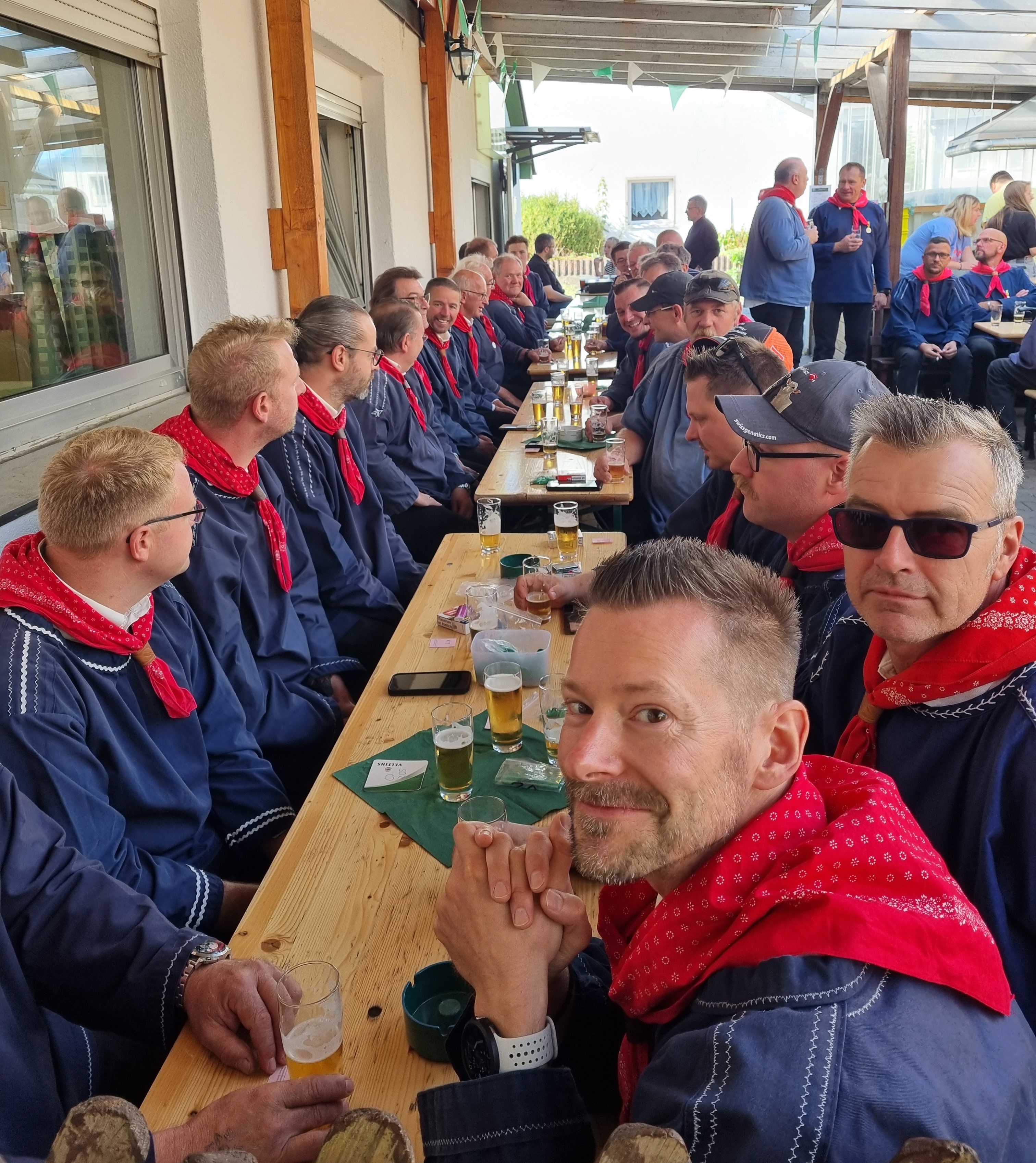 Treffen in gewohnter Tracht mit Kittel und Halstuch